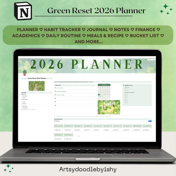 Notion Aesthetic Green Reset 2026 Planner
