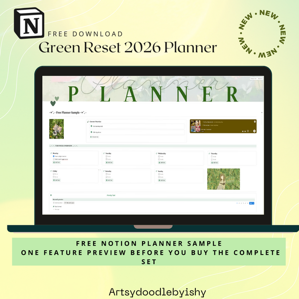 Free Notion Preview of Aesthetic Green Reset 2026 Planner